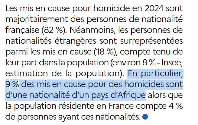 C'est incroyable cette mauvaise foi.Je ne comprends pas ce commentaire. e commentaire. Si 9% des mis en cause dans les homicides sont des Africains, alors il va de soit que les Français d'origine africaine représentent un pourcententage plus petit