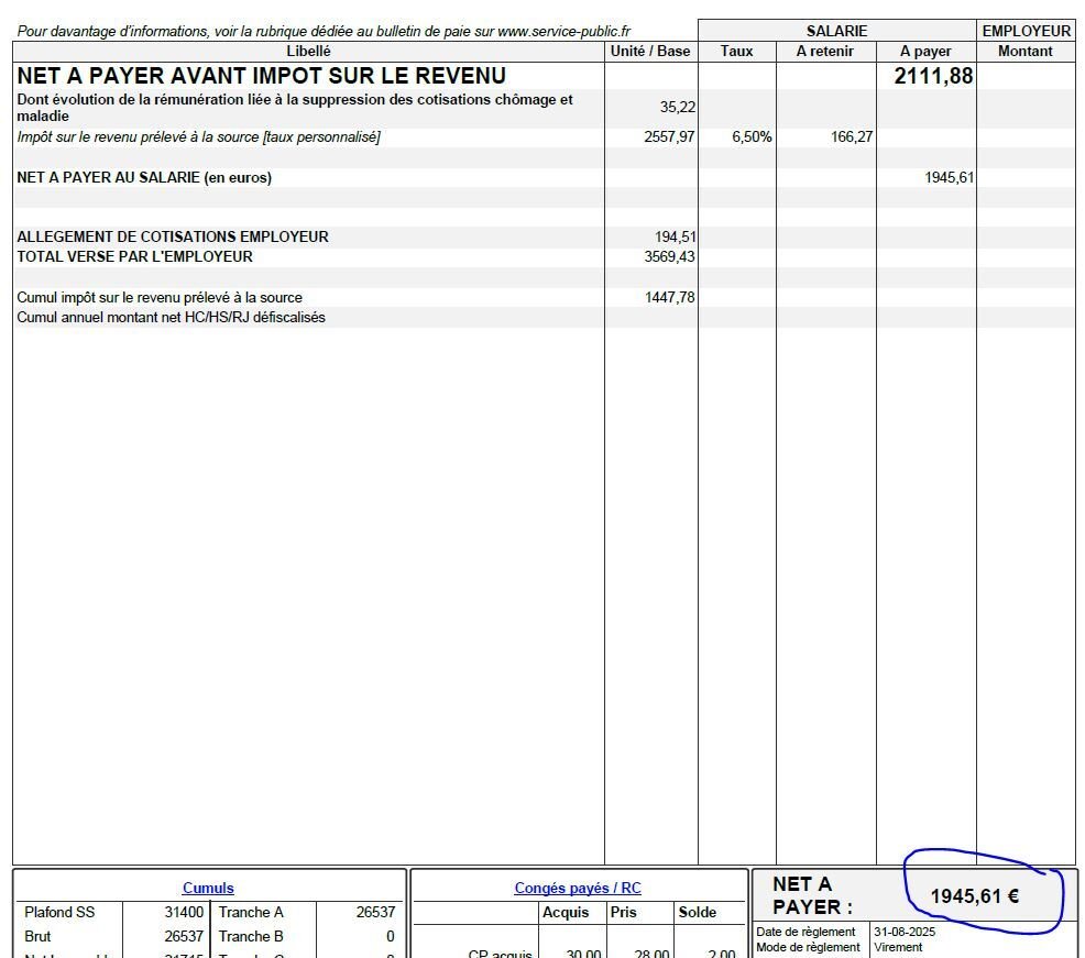 ca pue la merde mais tu touches 3K à l'aise en TTTiens comme je suis sympa je viens d'aller chercher ma fiche de paie d'août :