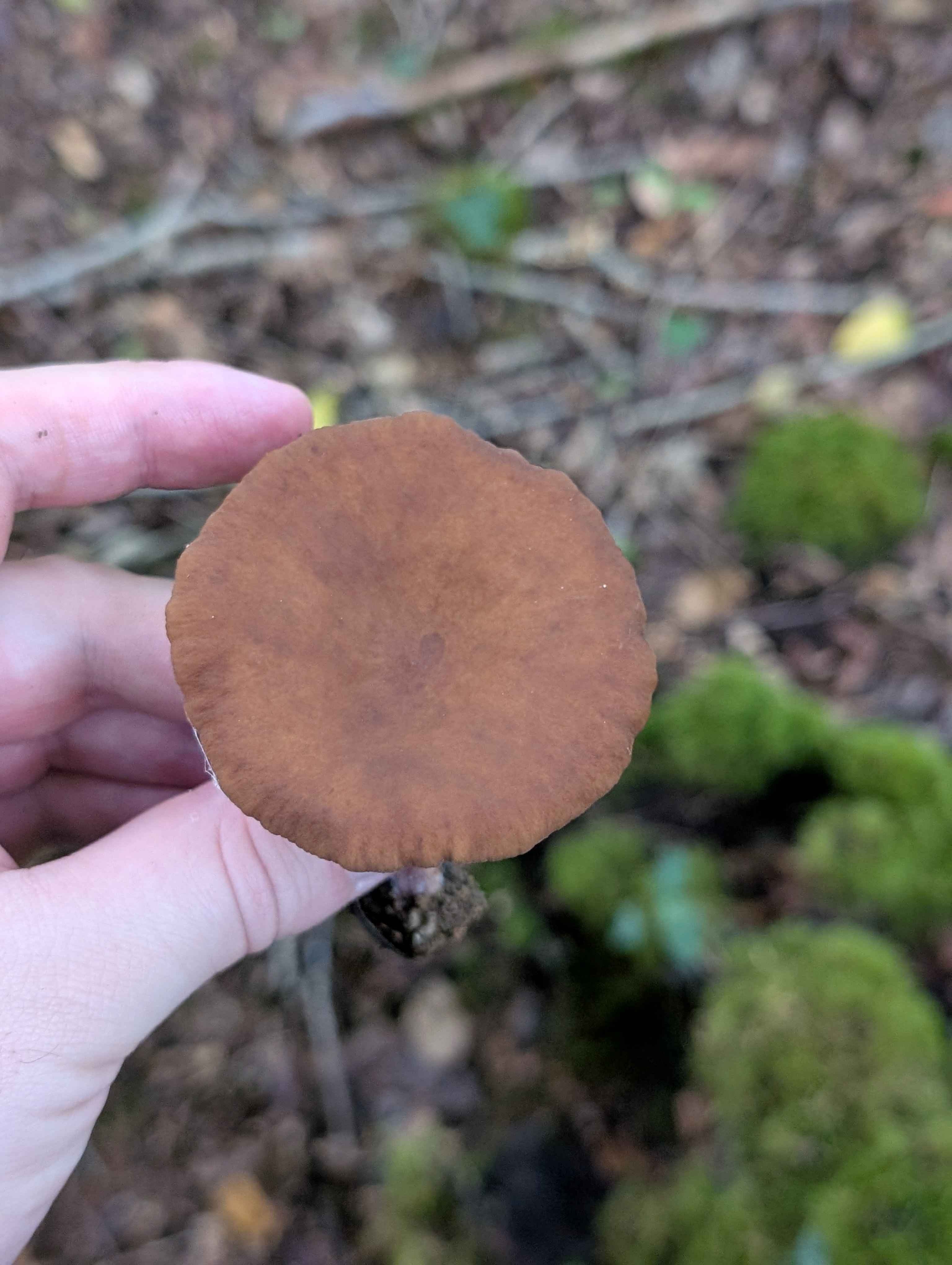 Un lactaire que j'arrive pas à identifier. Les applis me disent que c'est un lactarius rubidus, avec une odeur douce, qui se transforme en odeur de caramel au beurre une fois séché et utilisable en pâtisserie ou en glaces. Sauf que c'est une espèce qui n'est censée pousser qu'aux Etats Unis ayaaaa. En tout cas c'est un lactaire c'est sûr