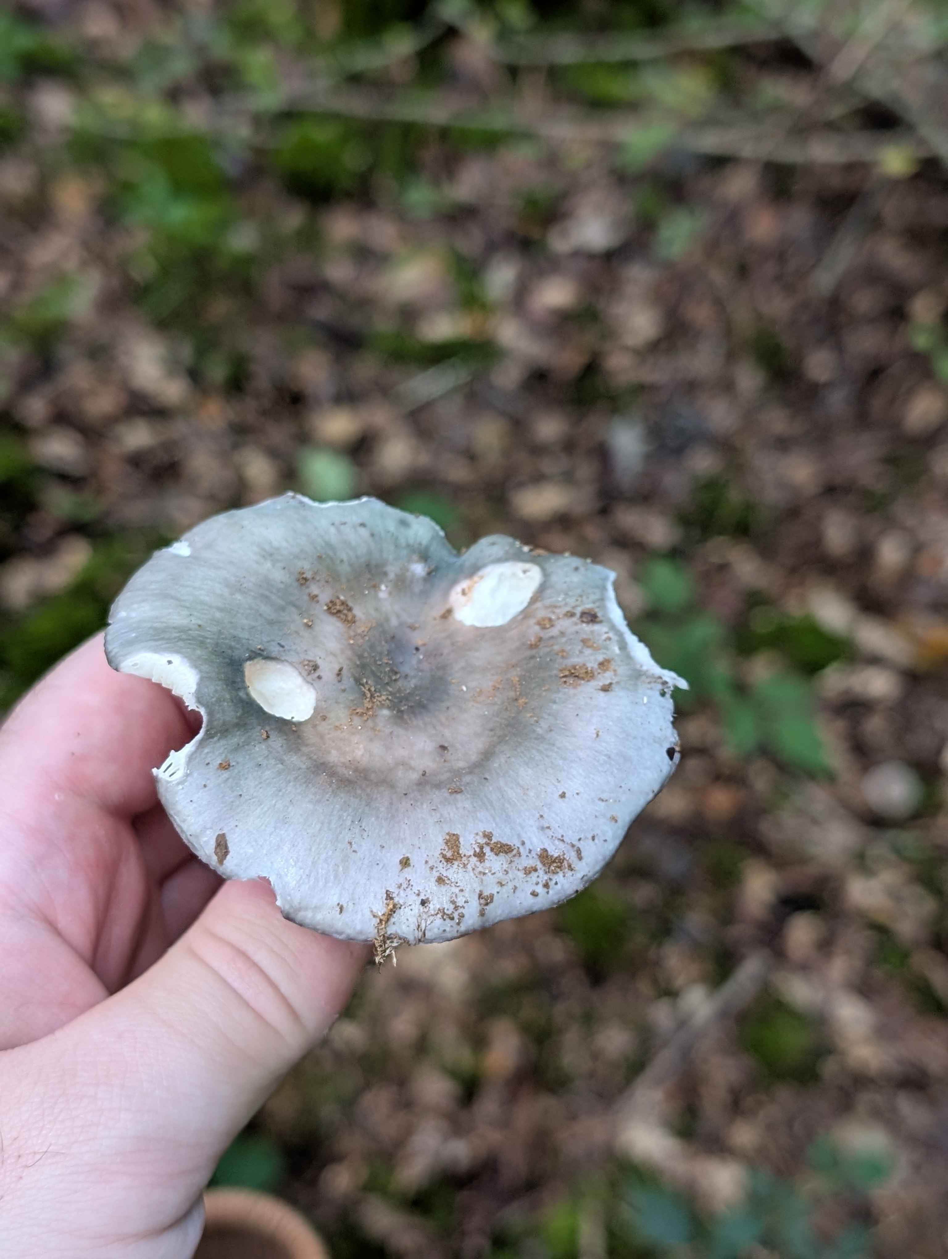 Un gros agaric des bois, un des cousins sauvages du champignon de paris, comestibleUn lactaire que j'arrive pas à identifier. Les applis me disent que c'est un lactarius rubidus, avec une odeur douce, qui se transforme en odeur de caramel au beurre une fois séché et utilisable en pâtisserie ou en glaces. Sauf que c'est une espèce qui n'est censée pousser qu'aux Etats Unis ayaaaa. En tout cas c'est un lactaire c'est sûr