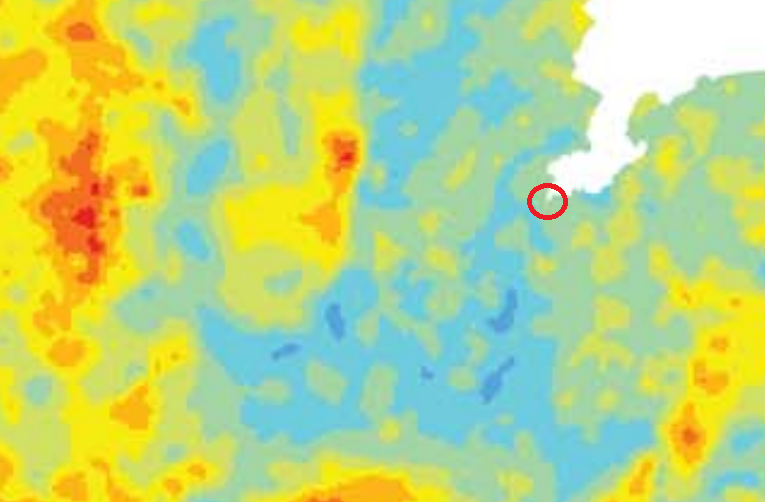 En laissant mon doigt sur l'écran, je passe sur l'onglet maps et superpose les deux cartes grâce au point de repère. Il ne reste plus qu'à replacer son doigt sur un point acide de la carte des sols puis passer à l'onglet maps.