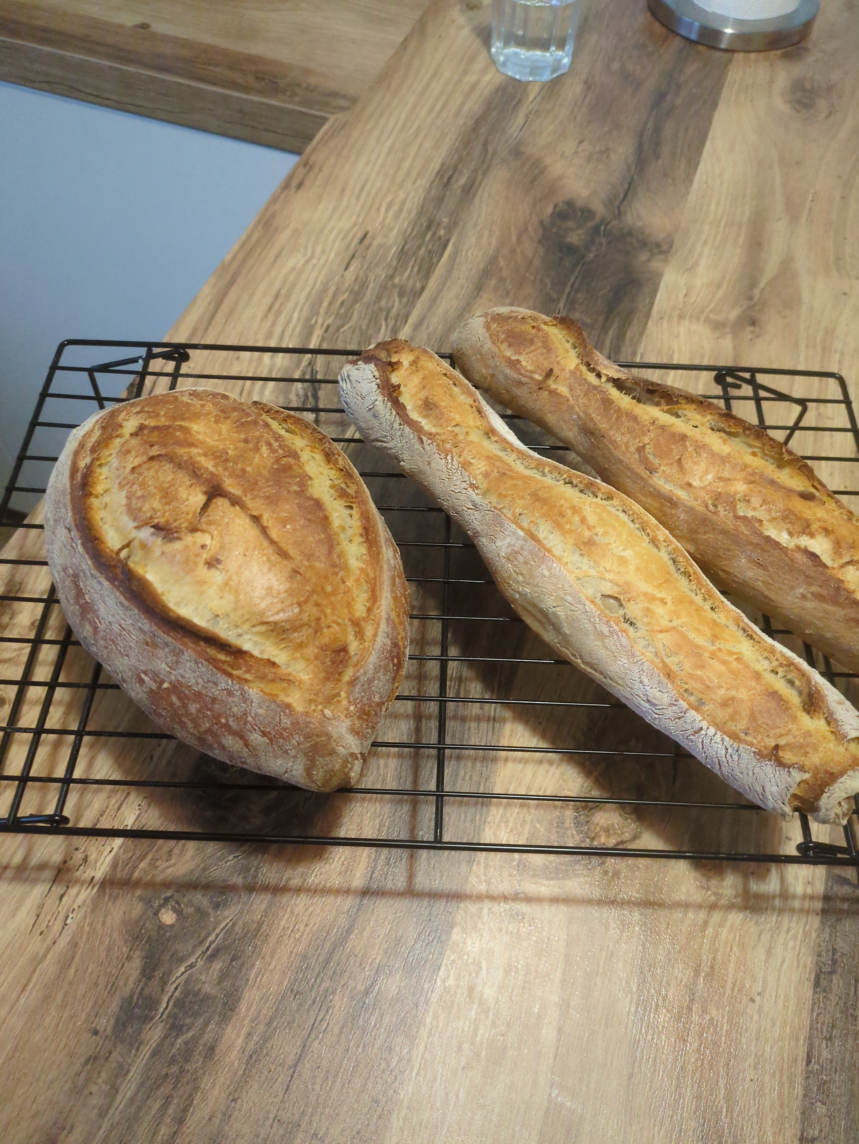 C'est parti pour ma fournée du matin. 2 baguettes et un pain plus gros pour les tartines salé du soir