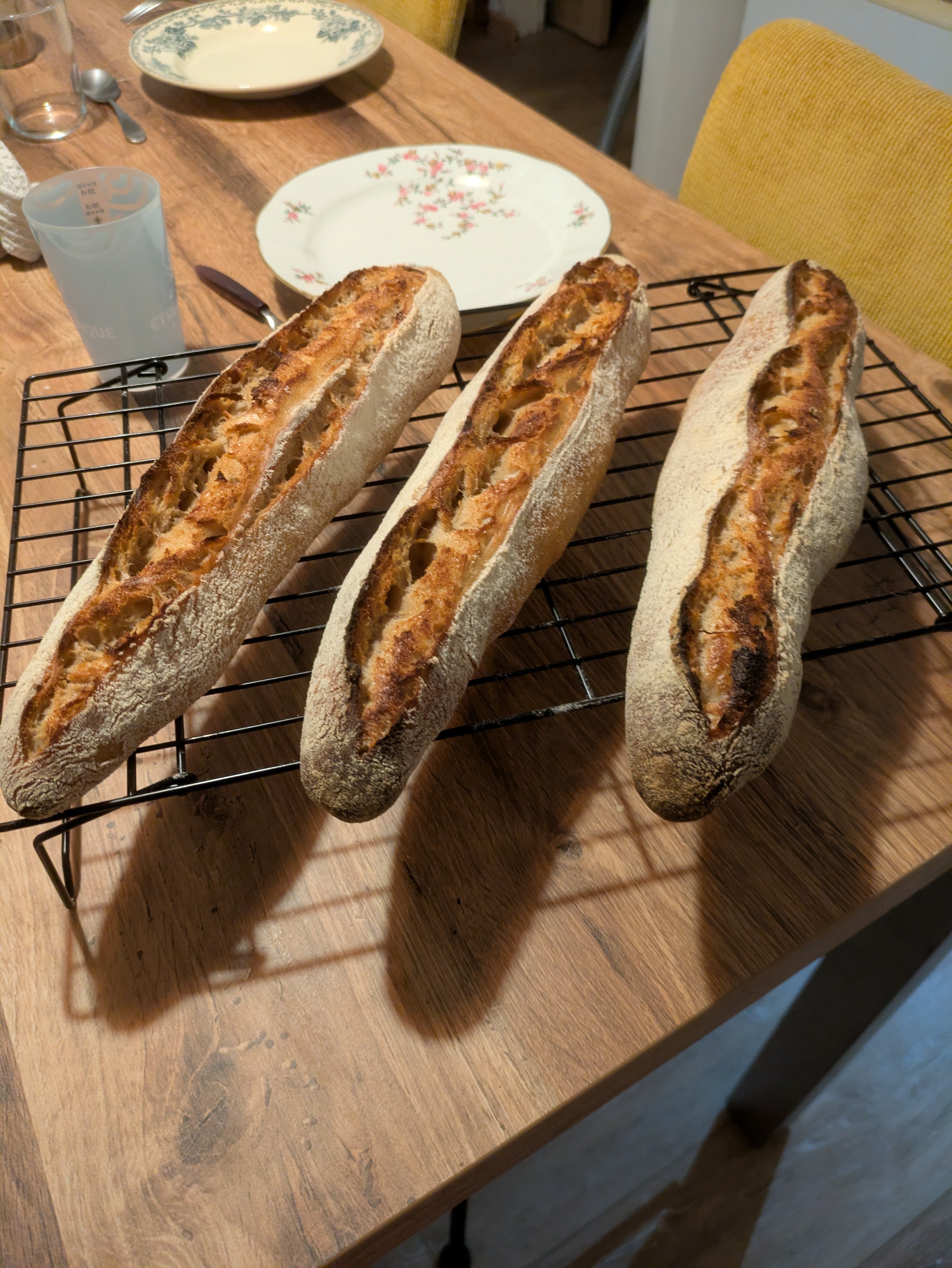 Et là je viens de sortir des baguettes pour le pdj de demain. Petit a petit je peaufine ma technique. Elles sont plus régulières maintenant.