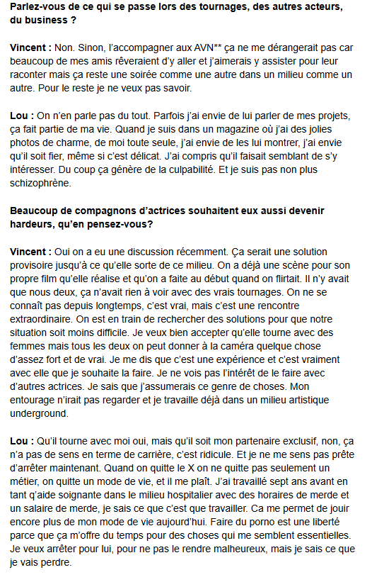 https://web.archive.org/web/20130729023637/http://blogs.lesinrocks.com/katsuni/2012/02/22/faire-du-porno-et-etre-en-couple-temoignage-de-lactrice-porno-lou-charmelle-et-de-son-petit-ami