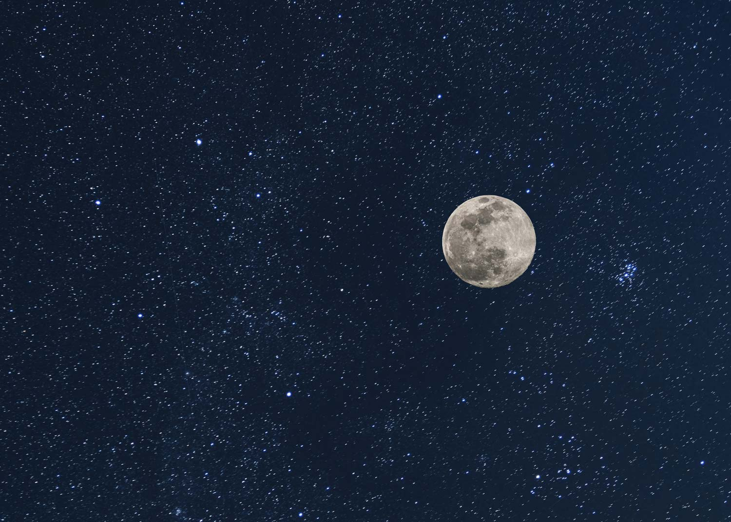 La lune resplendit dans sa mer d'étoile