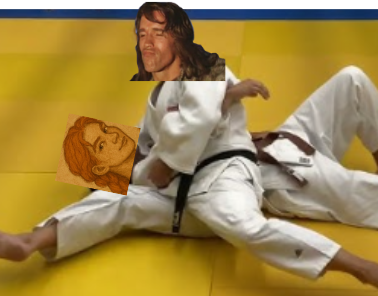 On l'embrasse, elle rougit et ne sais pas comment réagir et là PAF ! Balayage et soumission au sol