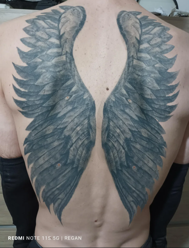 Le tatouage de l'aile est dans le bon sens hein.Non.