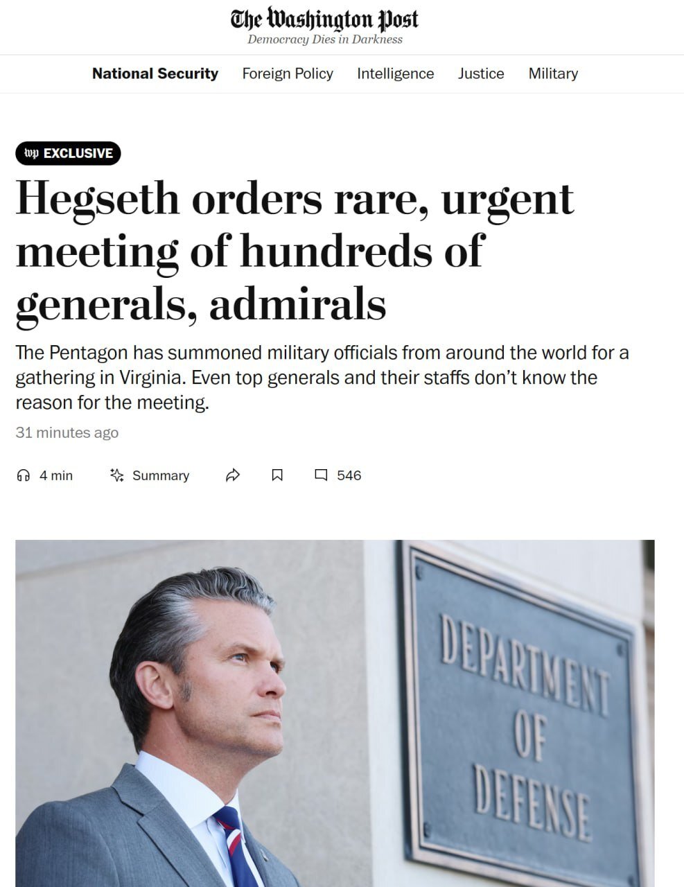 Même les généraux. Qui ne connaissent pas la raison du meeting https://www.washingtonpost.com/national-security/2025/09/25/hegseth-generals-quantico-meeting/?itid=hp-mv-top-stories_top-table-main_p001_f002
