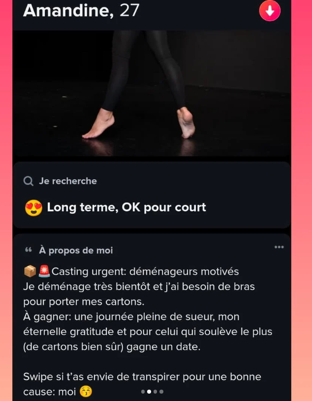 Perso j'aurais aidé à déménager en échange de ses pieds sur mon visage