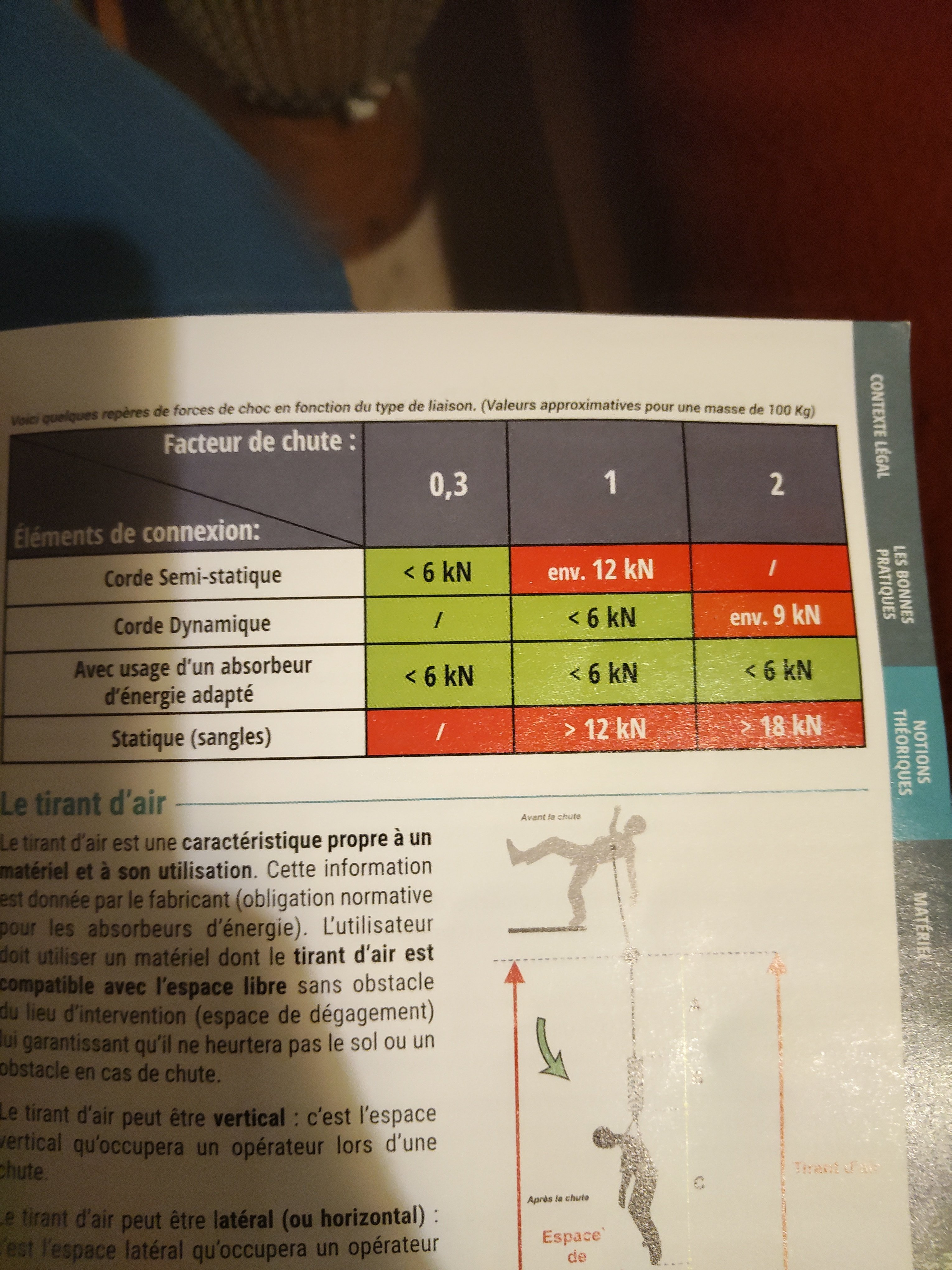 seul un absorbeur antichute va en facteur 2 .Si tu chute sur un dynamique ,corde au pied ,attaché en ventral tu va a 9 kn risque de séquelle .En via ferrata les facteurs de charge sont hors norme,labsorbeur se declenche a 6kn sois un facteur 2 ,et la tu es pendu dans le vide et ta plus cas attendre les secours .