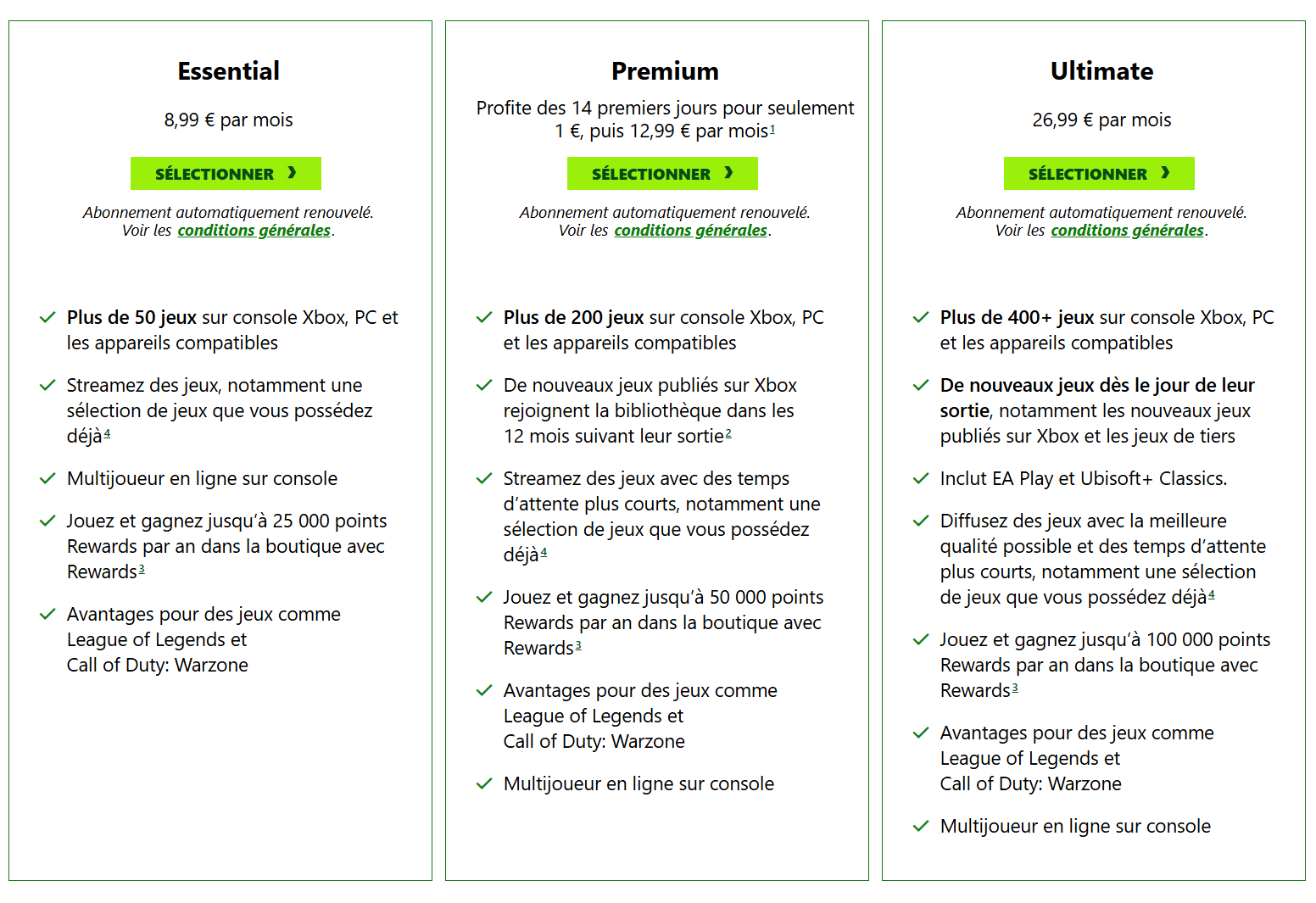 Y'a pas moyen de l'avoir moins cher sur le net ?Si on peut l'avoir moins cher en prenant des abonnements gamepass core, qui deviennent la formule essentials maintenant, et tu convertis en ultimate.