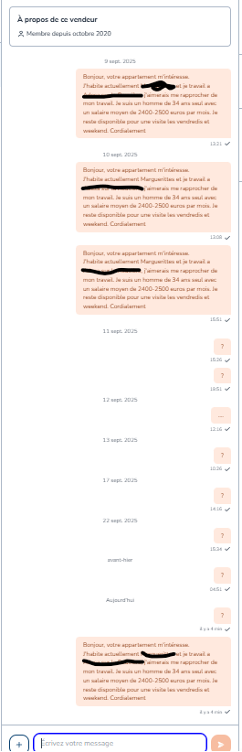 elle cherche a louer un appartement qui est soi disant libre de suite, sans meme repondre ou ouvrir au message, avec mon salaire et son appartement, je suis de loin le meilleur dossier