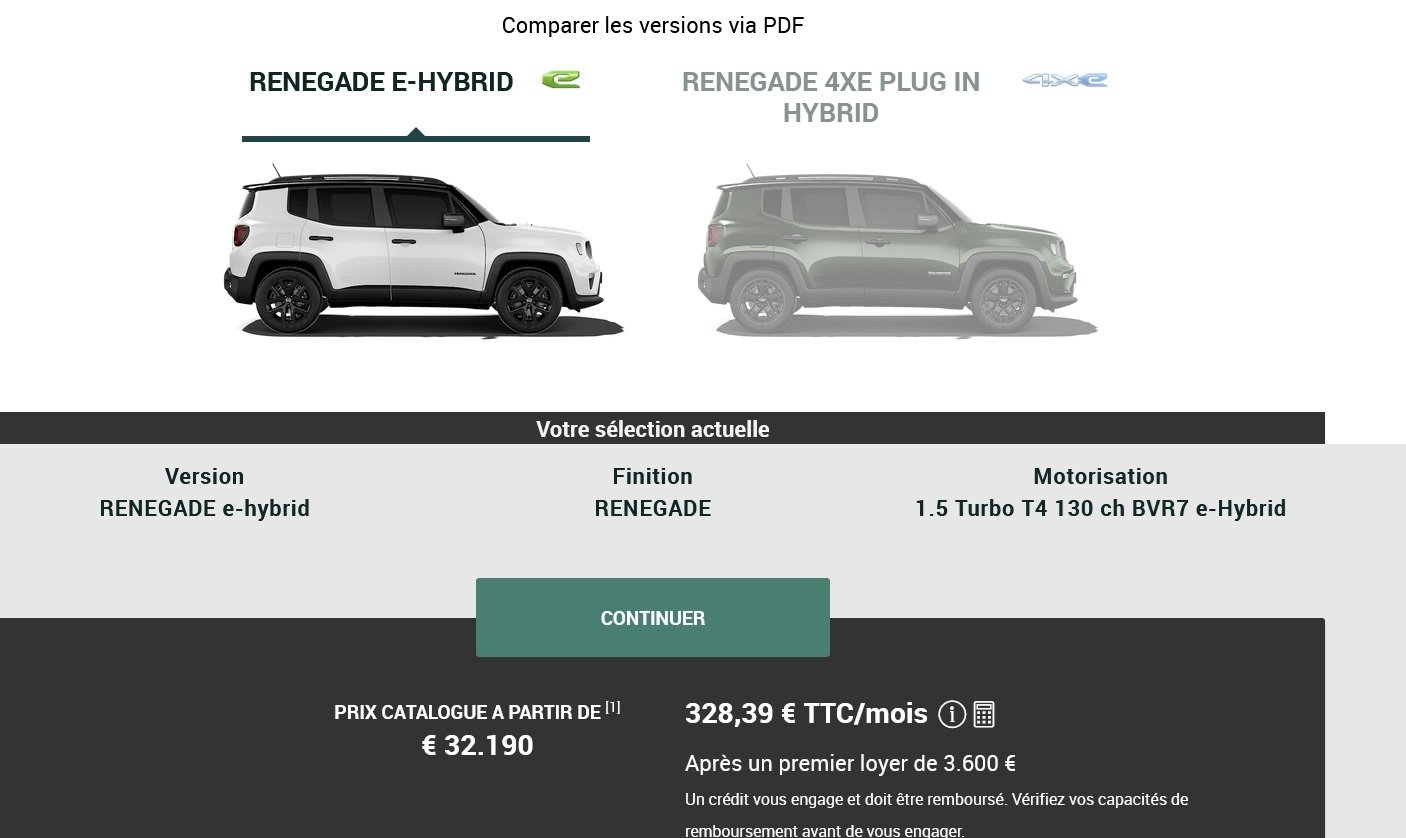 Que des merdes électriques ou hybrides, le modèle le moins chère est l'avenger 100CV 1.2 essence à partir 26 000 et qui est plus petite que la Renegade, comparativement son prix équivaut à une quashqaie d'il y a 7 ans à 140 CV et plus grande !