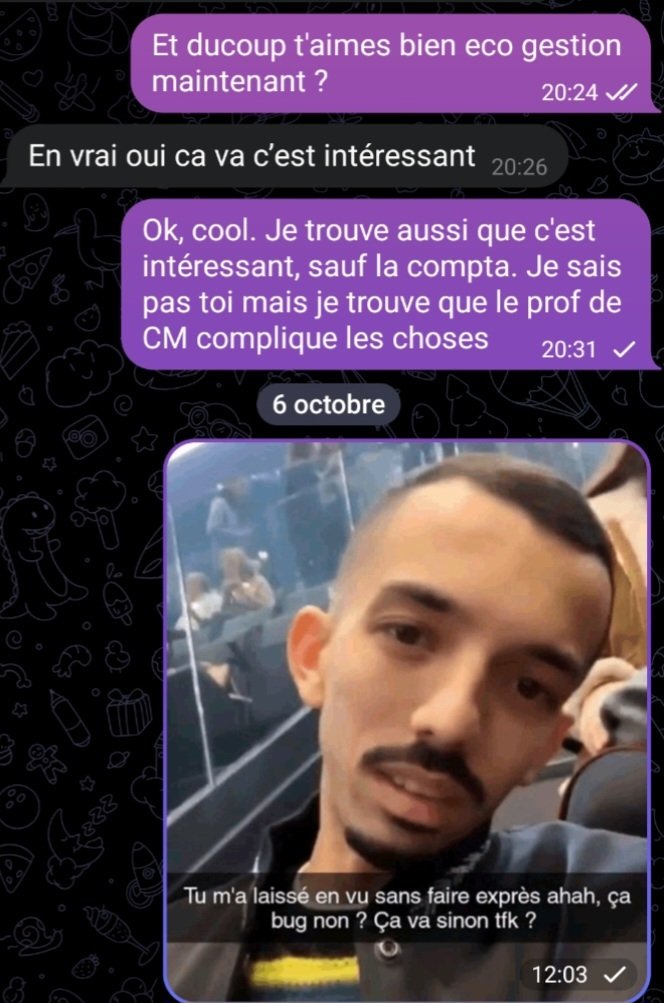 Mais jusqu'ici on se rapproche doucement. Maintenant elle me confie des trucs persoLe 06 octobre 2025 à 11:54:10 :