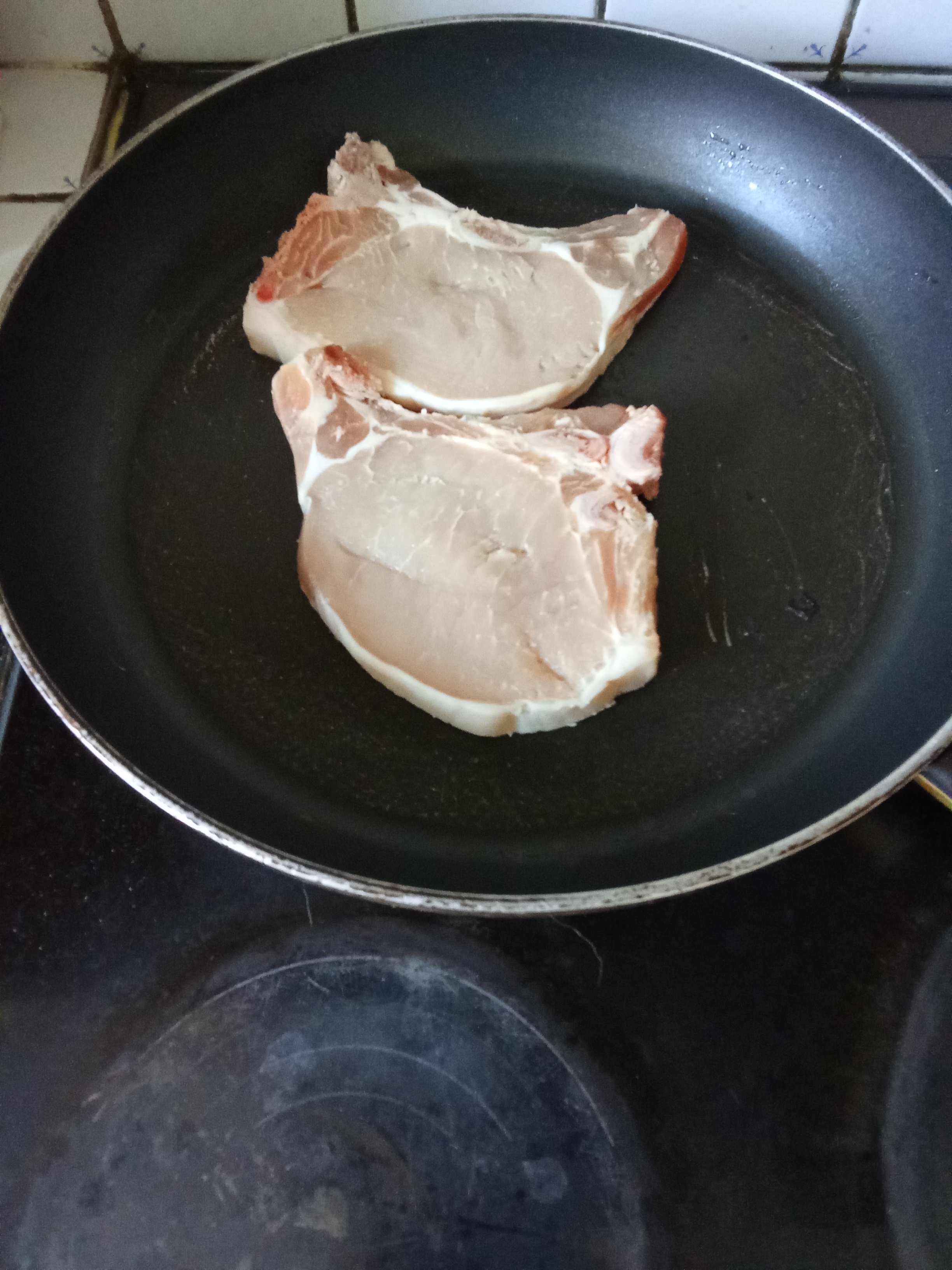 Côte de porc frérotOui je fais cuir mon poulet avec de l'eau pour que ça attache pas