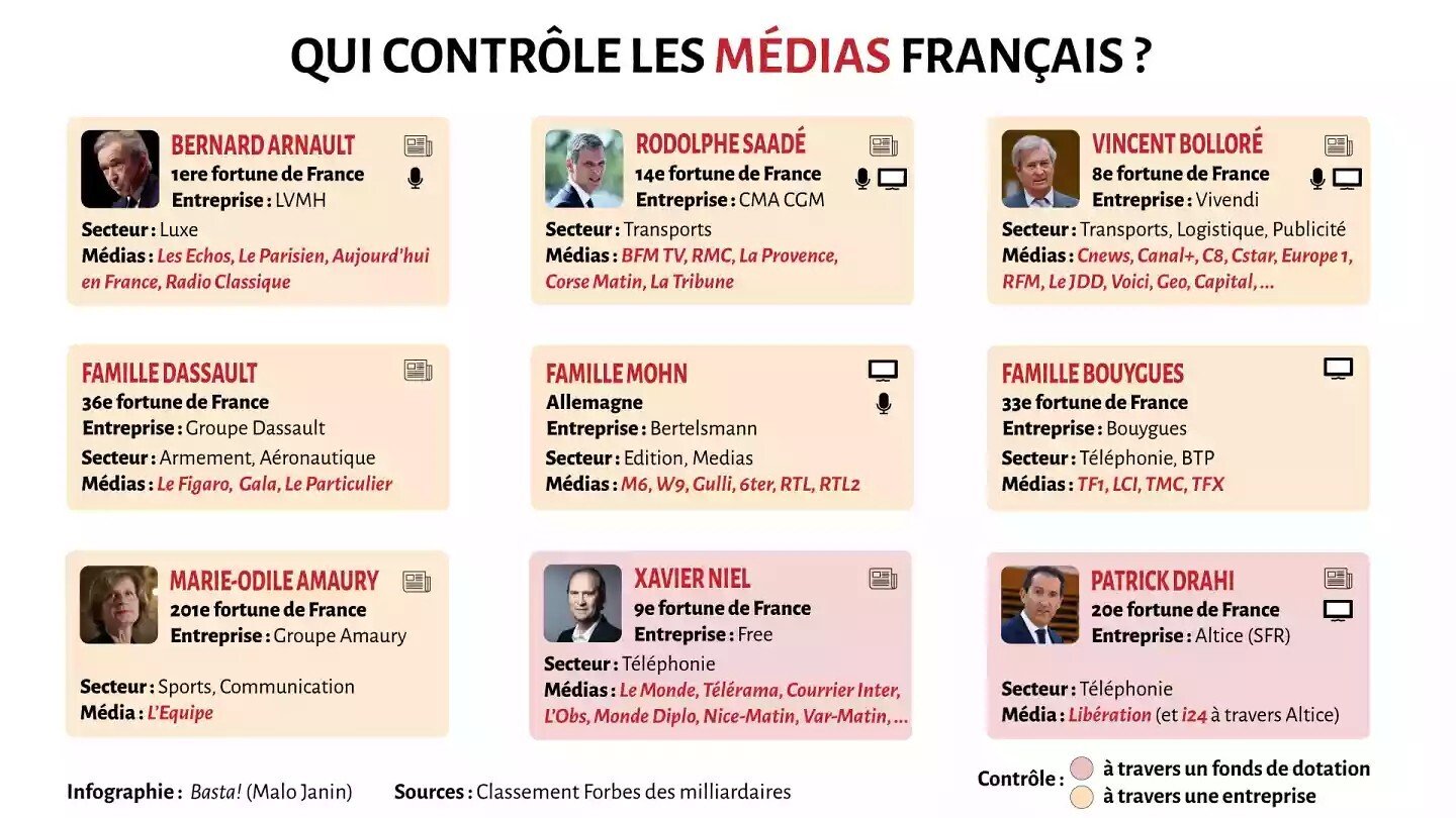 Et le MILLIONAIRE pigasse détient beaucoup moins de médias que LES MILLIARDAIRES sterin, bollore, drahi, Arnaud, saade, daussault, Bouygues, ...