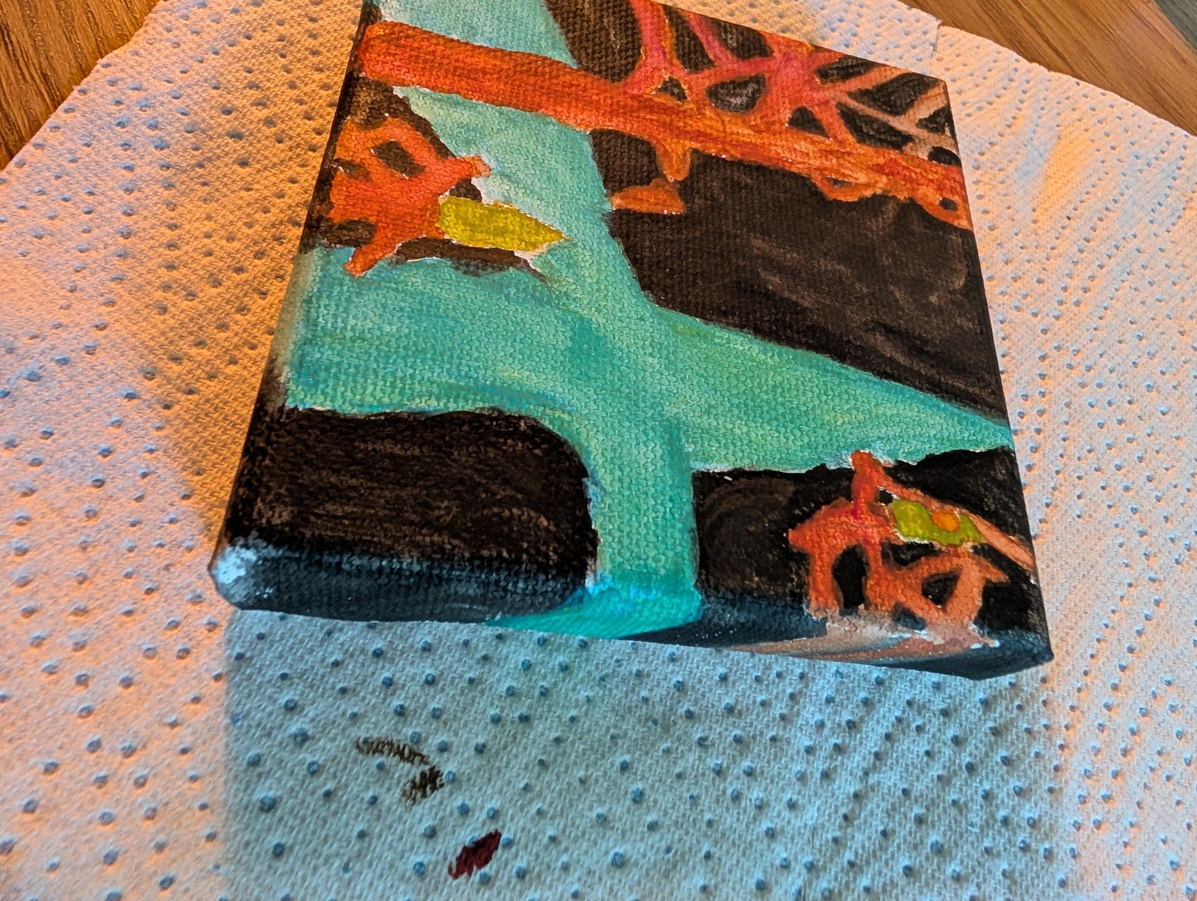 Oui, je sais, c'est horriblement enfantin, mais c'est ma toute première peinture, et mon niveau de dessin est lamentable également Pourtant, malgré ce cale-porte à l'aquarelle, j'ai beaucoup apprécié la réalisation, je vous partage ça par envie, et pour peut être aussi inviter quelques kheys à se lancer dans une chose où ils s'estiment exécrables, mais où ils prendront pourtant du plaisir