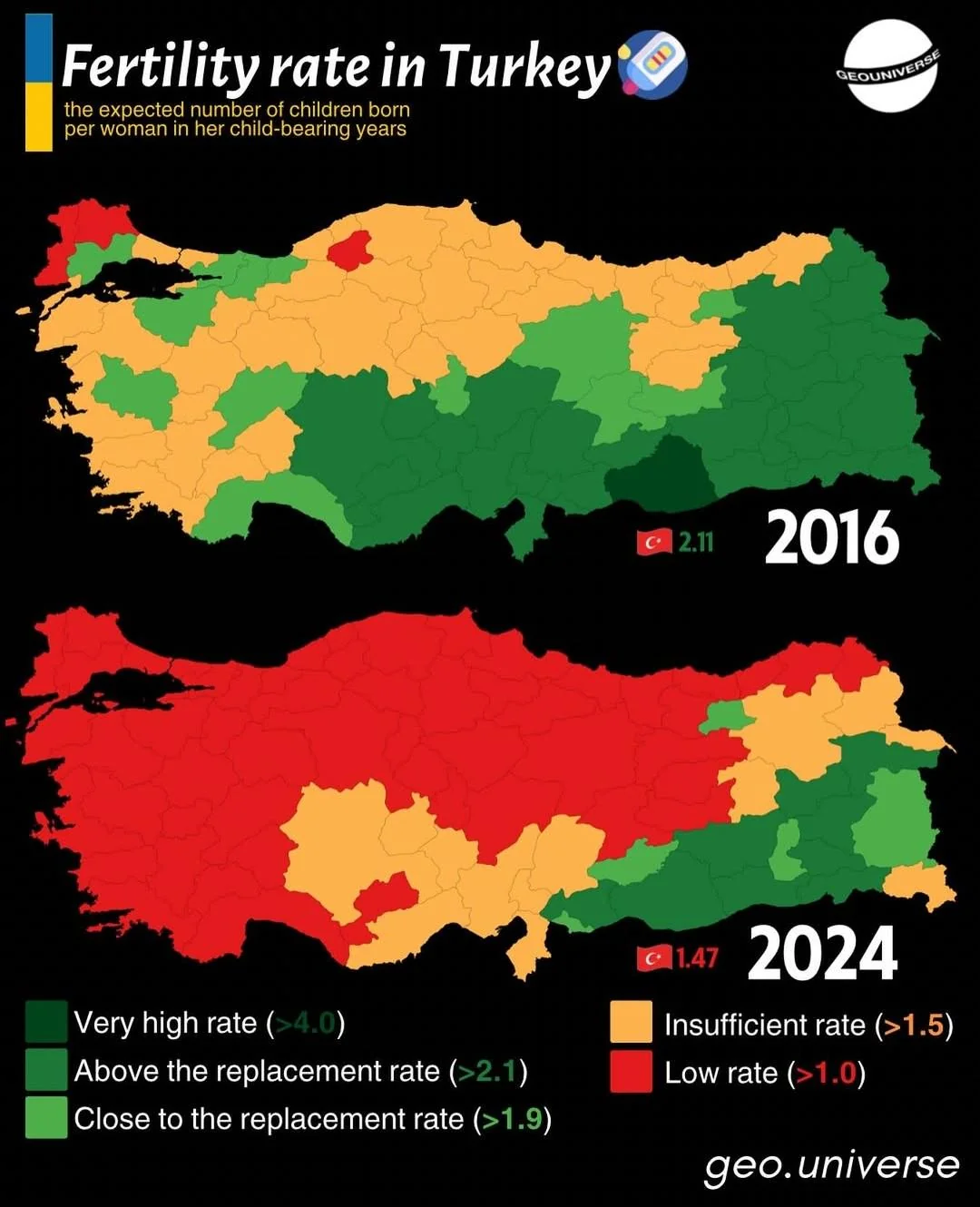 On a très peu de données sur l'Afrique mais ça s'effondre aussi là-bas, mais on est encore loin d'être en dessous de 2 à part en Afrique du Nord _.gif)