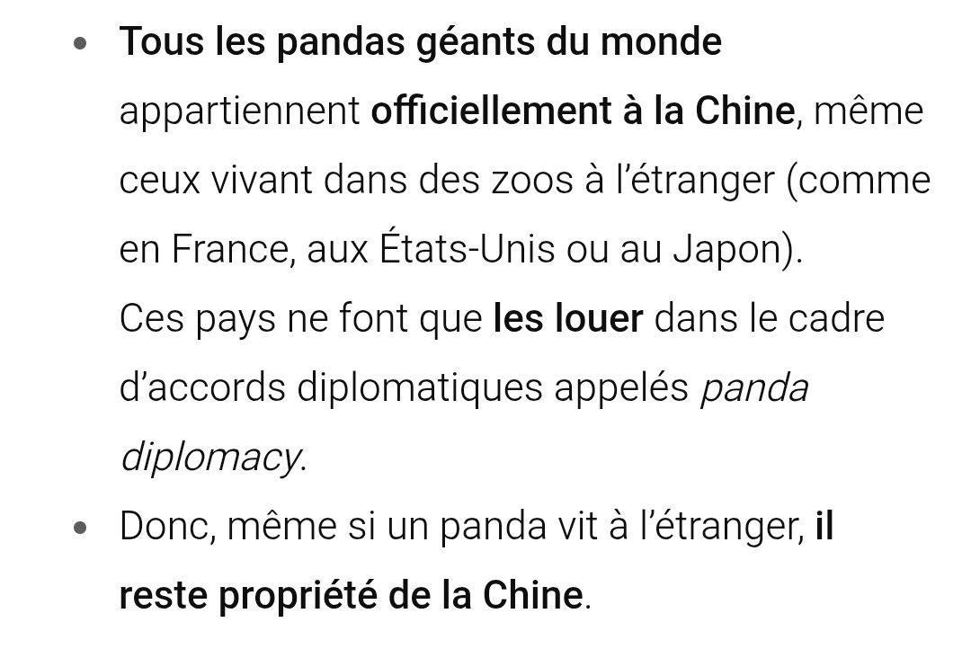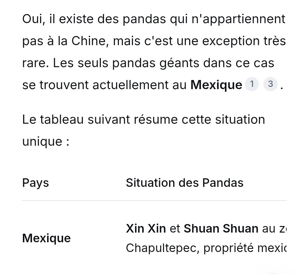 Aujourd’hui (24 octobre 2025), le seul panda géant vivant qui n’appartient pas à la Chine est Xin Xin, femelle au zoo de Chapultepec (Mexico). Elle descend d’un couple offert dans les années 1970, avant que Pékin ne passe en 1984 d’« cadeaux » à des prêts payants où adultes et petits nés à l’étranger restent propriété chinoise. Les pandas jadis « offerts » à d’autres pays sont tous décédés.