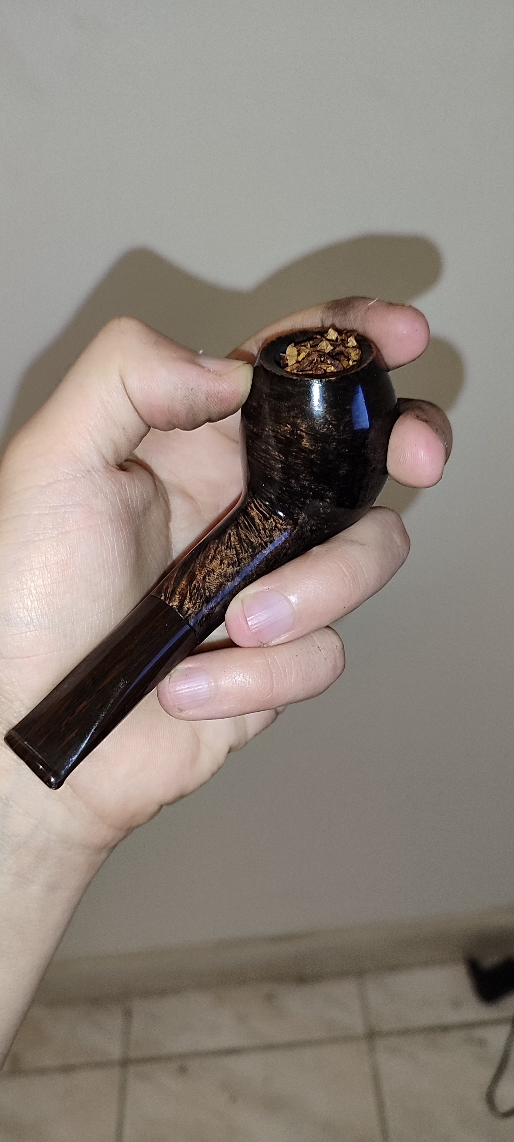 Brûle-gueule en bruyère laquée de forme seater bent egg, tuyau droit acrylique adapté aux filtres 9mm je présume ?Ta pipe la plus chere?