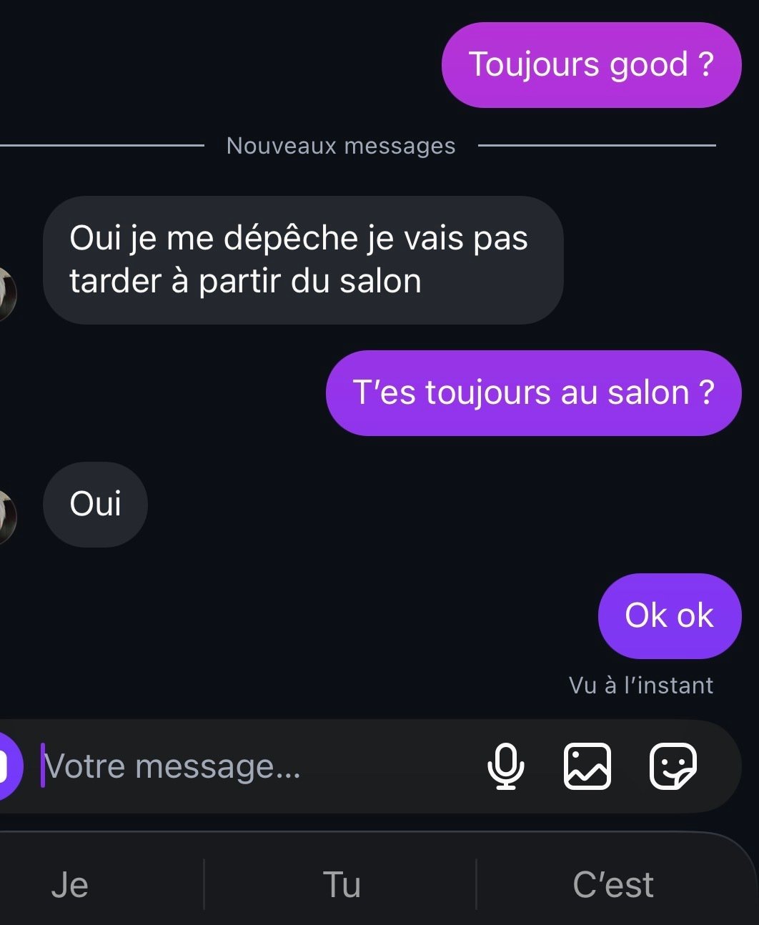 Le 15 octobre 2025 à 14:19:24 : Bizarre, elle sort du salon alors que le salon ferme au grand maximum à 20hOh tiens, elle aurait donc menti pour se débarrasser d'un gros lourd