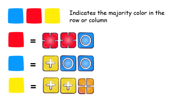 La couleur en haut et gauche des ligne sindiquent la couleur majoritaire