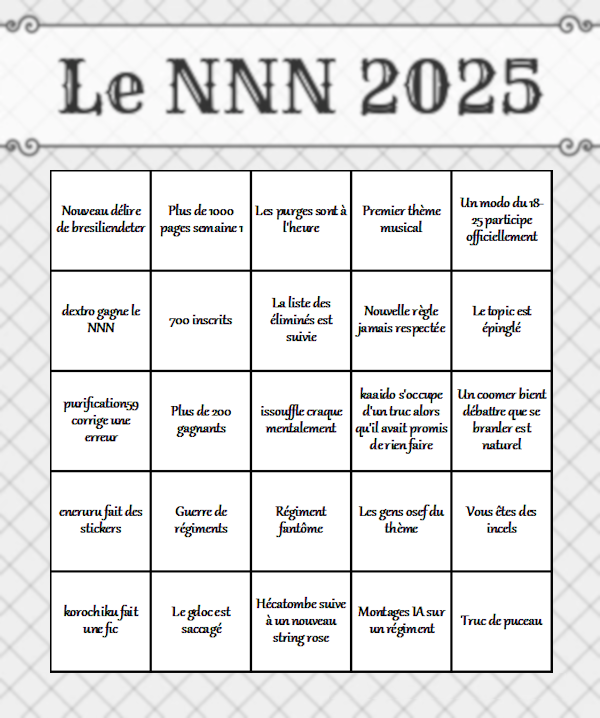 > > BINGO OFFICIEL ... BONNE CHANCE POUR COMPLETER UNE LIGNE