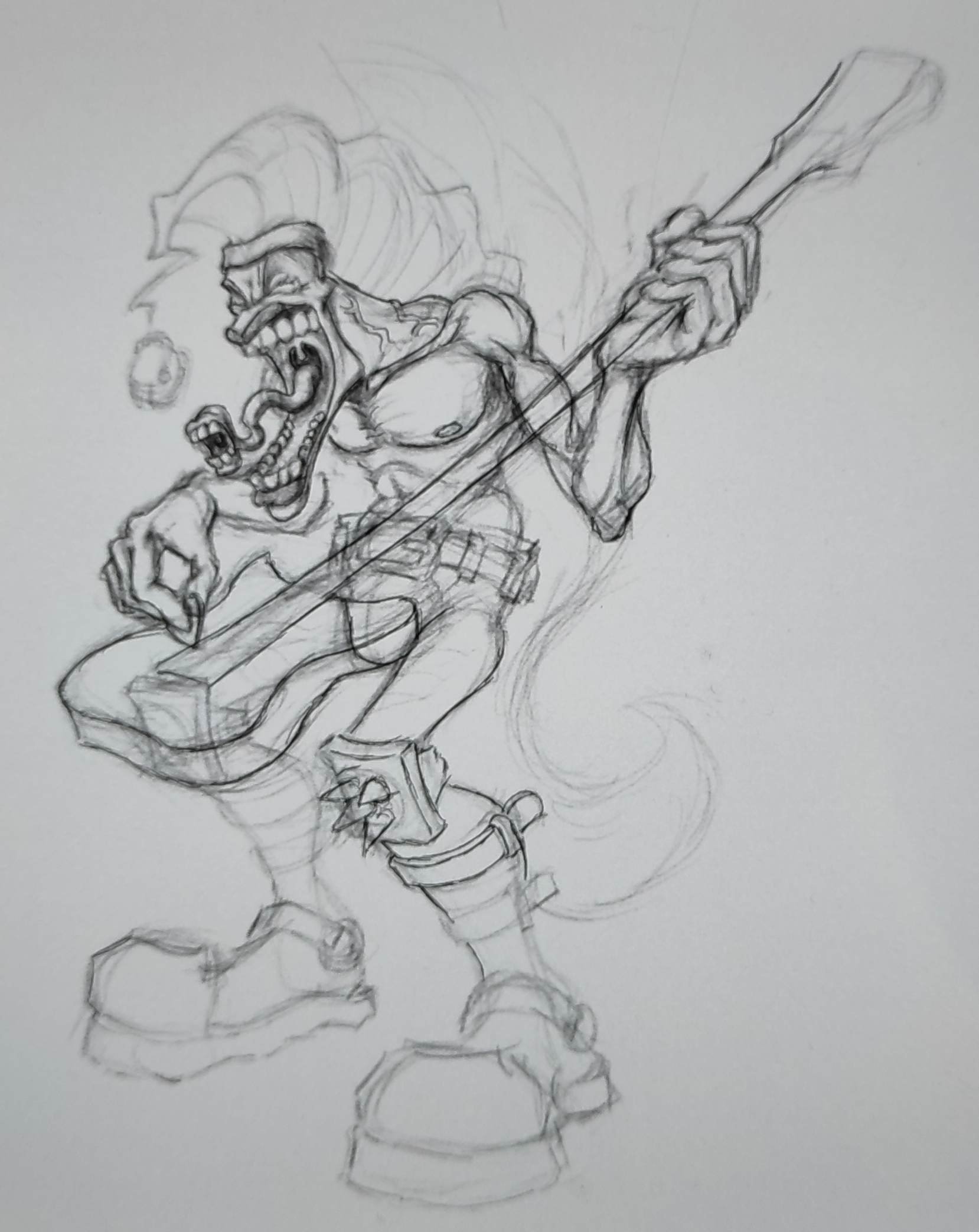 J'aime bien inventer des personnages un peu délirants en me basant sur des jeux de mots, symboles folkloriques, et hybrider la morphologie humaine avec des animaux pour en faire des monstres.