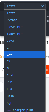 Edit : si ils gèrent bien le css mais j'ai filtrer pour qu'il y ait que des langages que l'api qui exécute le code (Piston) supporte