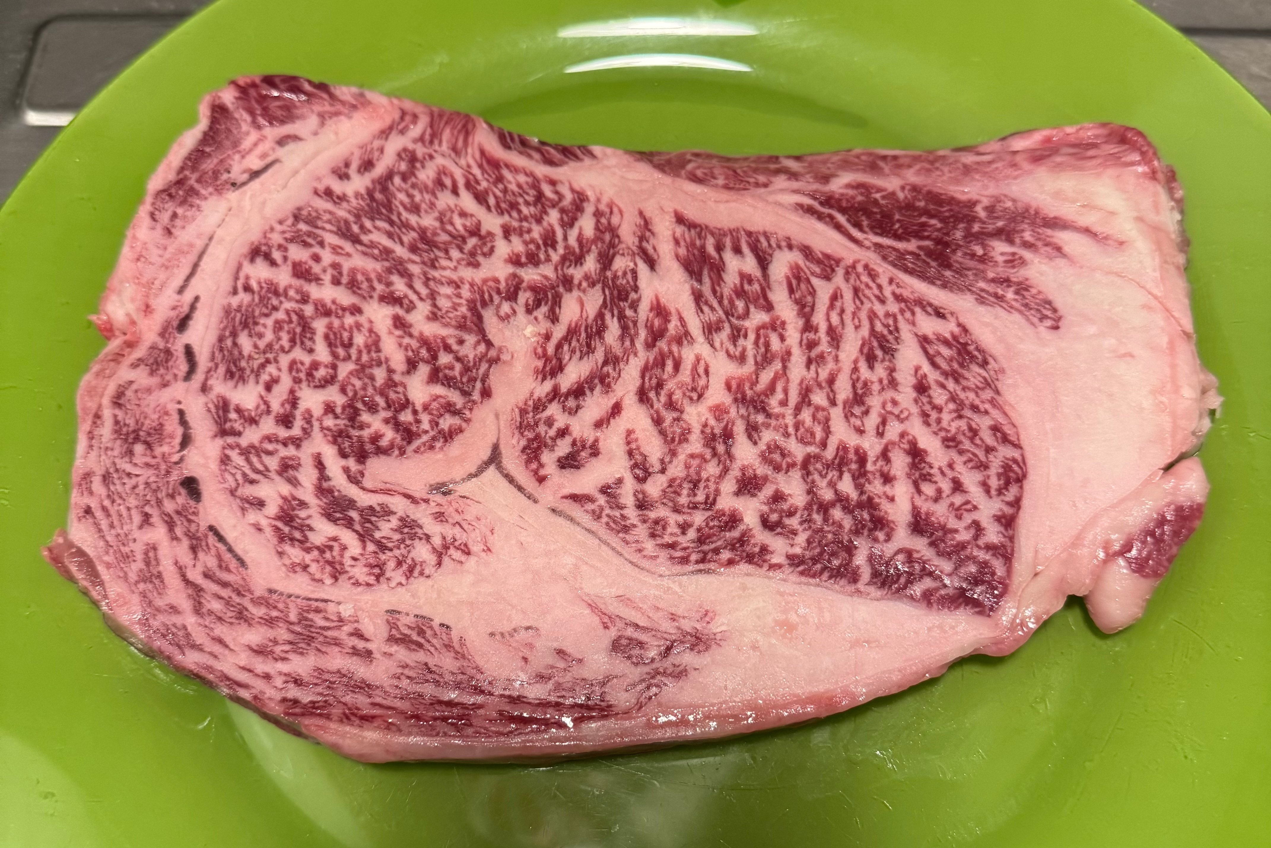 Ah mon p’tit, ça c’est du Kobé, direct du Japon, les vaches sont massées tous les jours, elles boivent de la bière, elles écoutent du Mozart, c’est du 5 étoiles pour ta poêle !