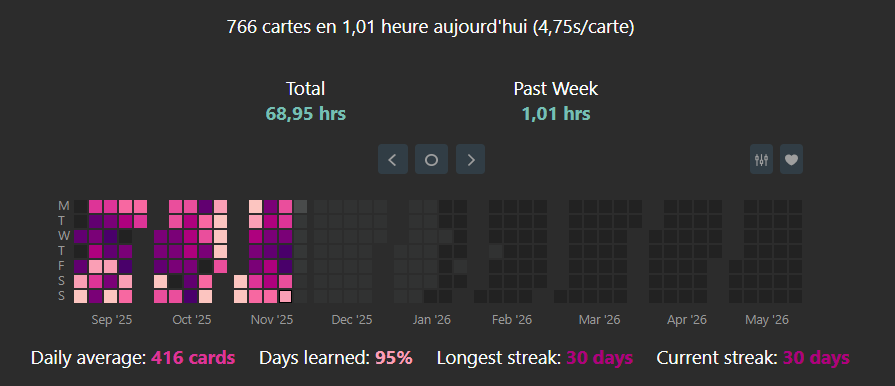 Tu étudies combien de cartes/deck quotidiennement ? J'ai mis 20 mais ça parait faible