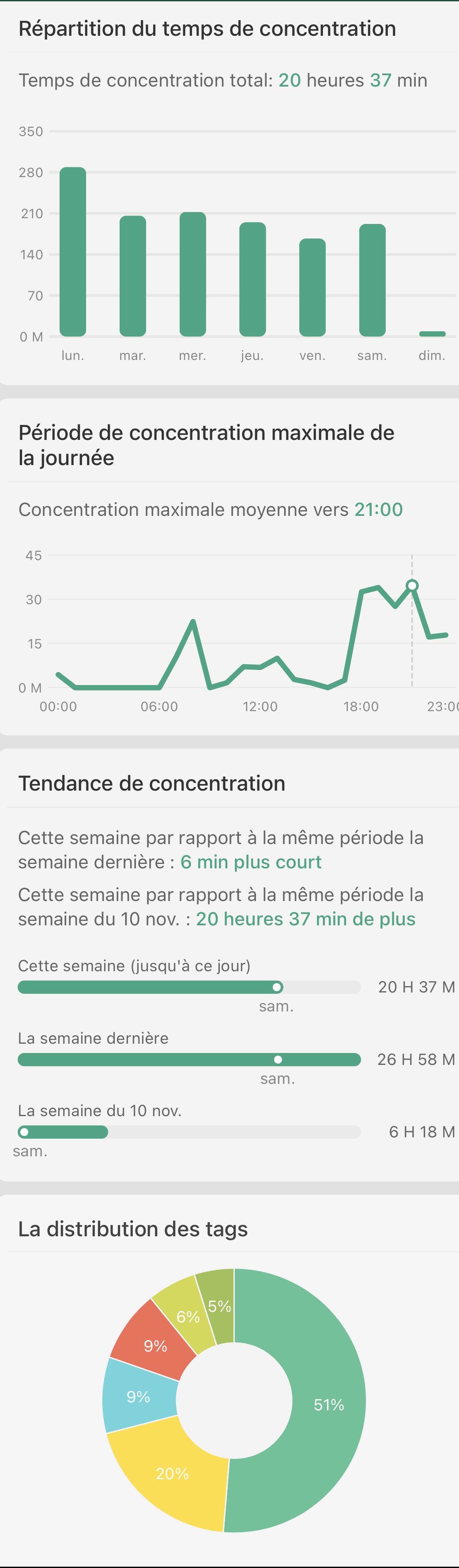 une app de suivi de temps de concentration ça te pousse encore plus à être productif pour voir ta petite forêt pousser et débloquer des trucs et avoir des jolies diagrammes camemberts
