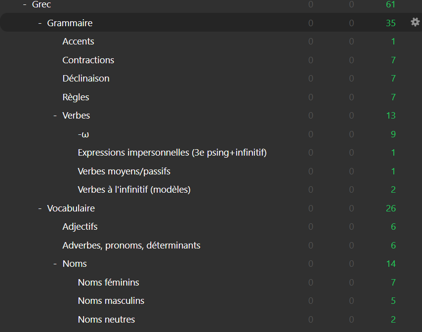 et aussi organiser les paquets, surtout en languecomme ça en faisant paquet par paquet ton cerveau va faire des liens entre les catégories grammaticales etc