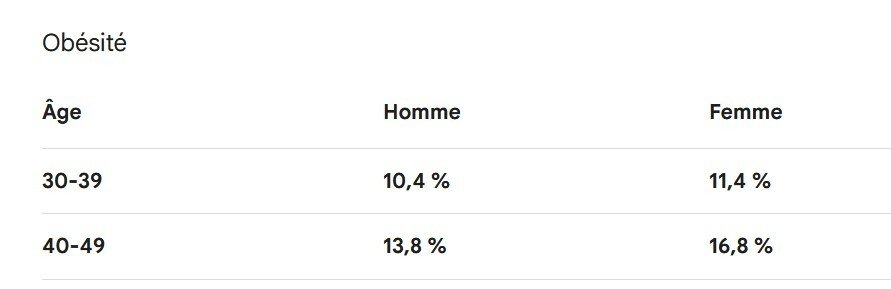 "Les hommes sont plus souvent en surpoids que les femmes (36,9 % contre 23,9 %)"