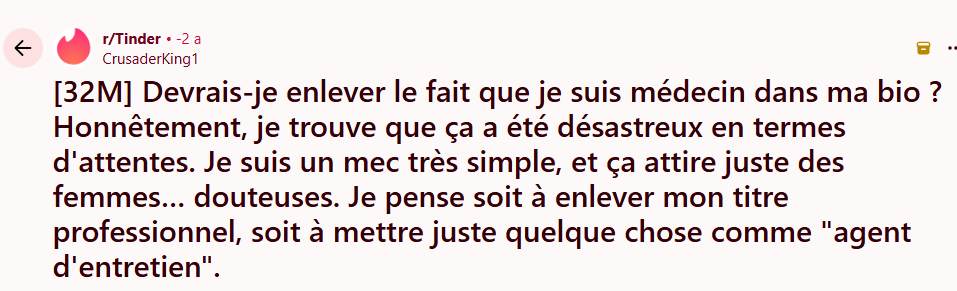 Mettre médecin dans sa bio alors qu'on est à l'AAHtu es cramax direct.