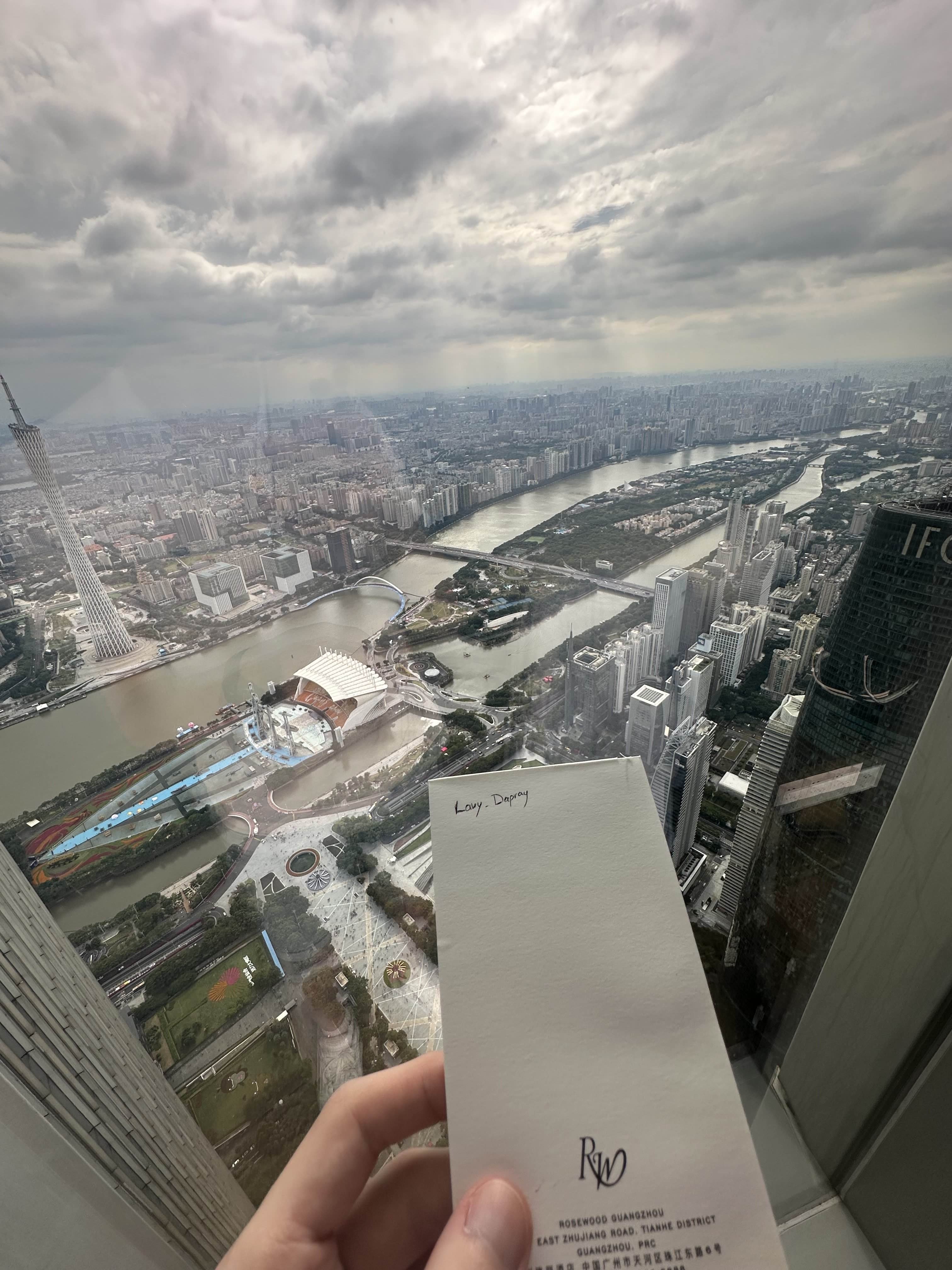 > >Petit coucou de Guangzhou depuis ma suite au 106 étage