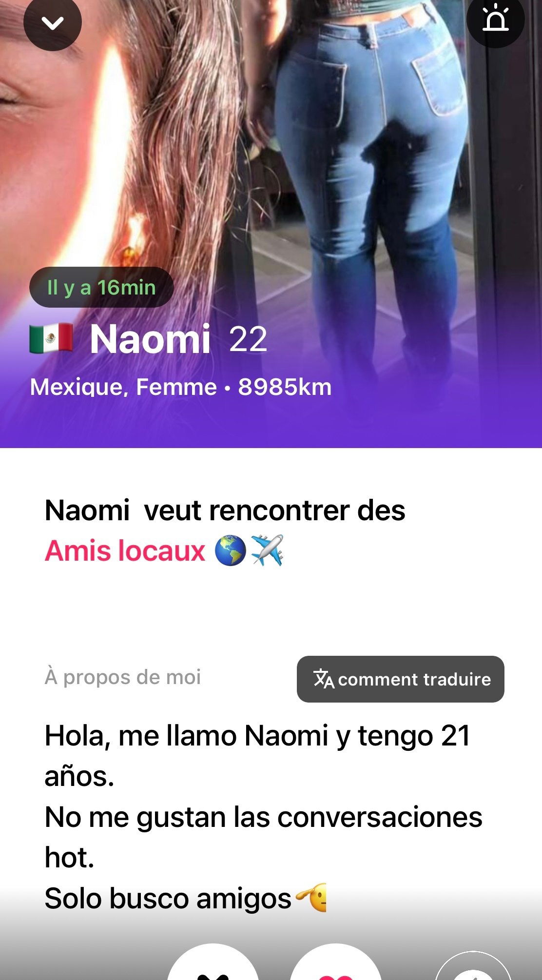 Putain j’avais réussi à me dégotter a nouveau une mexicaine de poche dévouée et cool (les meilleurs les mexicaines), on avait commencé à bien nuder et sextoter mais première fois que ça m’arrive elle m’a bloqué sans raison; habituellement c’est moi qui finis par ghoster ahi, elle a du paniquer pcq elle est dans un mariage arrangé je crois ahiBon bref meeff toujours possible mais faut vraiment avoir de la chance