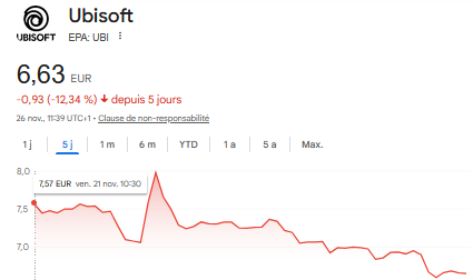 https://www.tradingsat.com/ubisoft-entertain-FR0000054470/actualites/ubisoft-entertain-apres-une-semaine-de-suspension-l-action-ubisoft-reprendra-sa-cotation-vendredi-au-plus-tard-1150947.htmlLa cotation en bourse reprend vendredi au plus tard