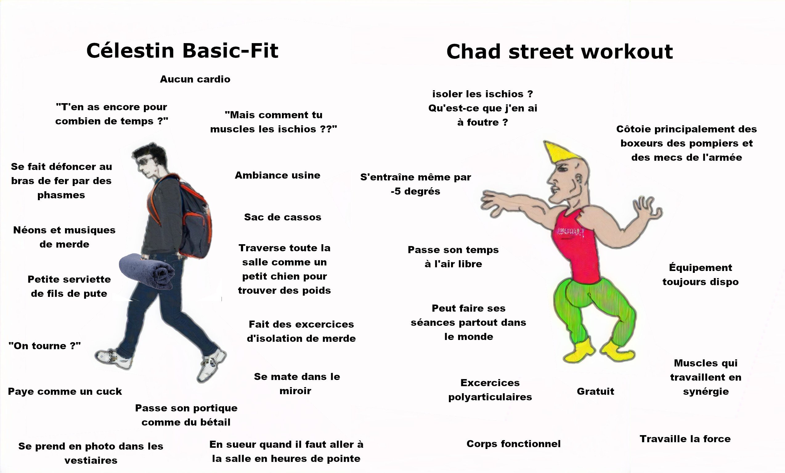 Les street worker avec un bas de corps inexistant ? (ceci dit c'est valable pour 80% des mecs en salle)