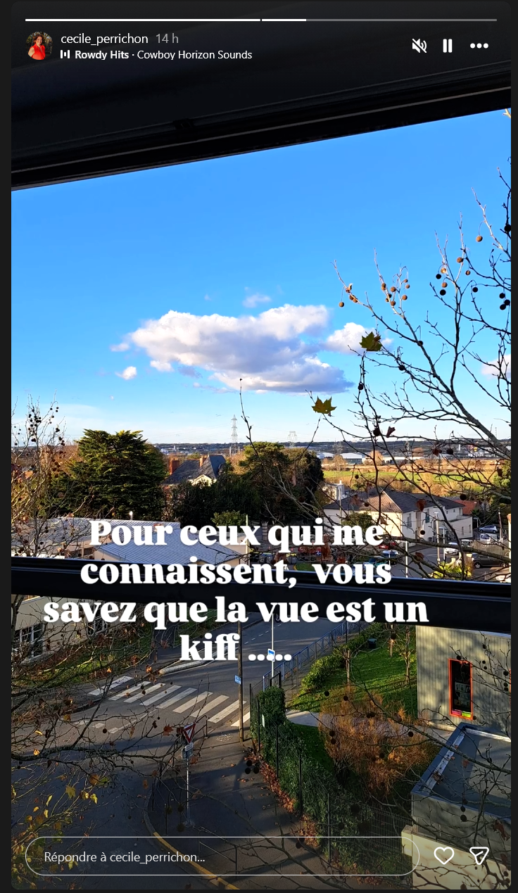 Elle "kiffe" la vue en tout cas. Ce qu'elle omet de dire c'est qu'un peu plus à droite elle a aussi une vue imprenable sur le périphérique nantais.