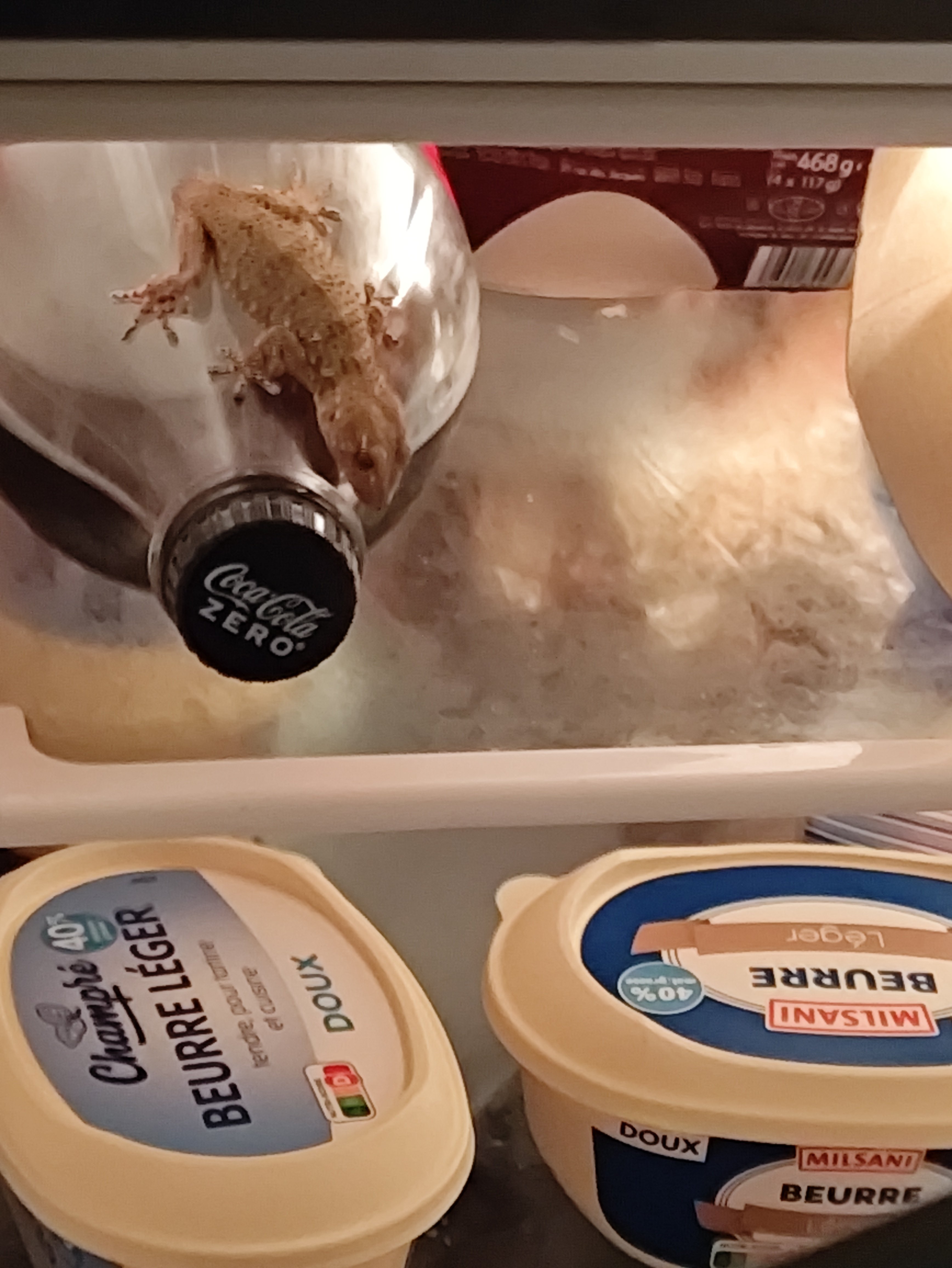Ouais honnêtement laisse le dans le frigo je vois pas pourquoi il est dedans et pas derrière. Il a rien compris ce con peut-être.