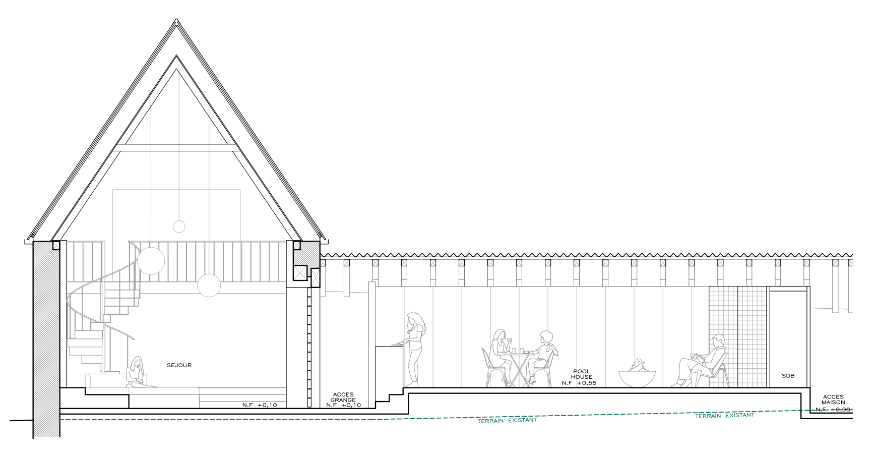 Transformation d’une grange en «maison des amis» et création d’un poolhouse à Salles-Courbatiès :