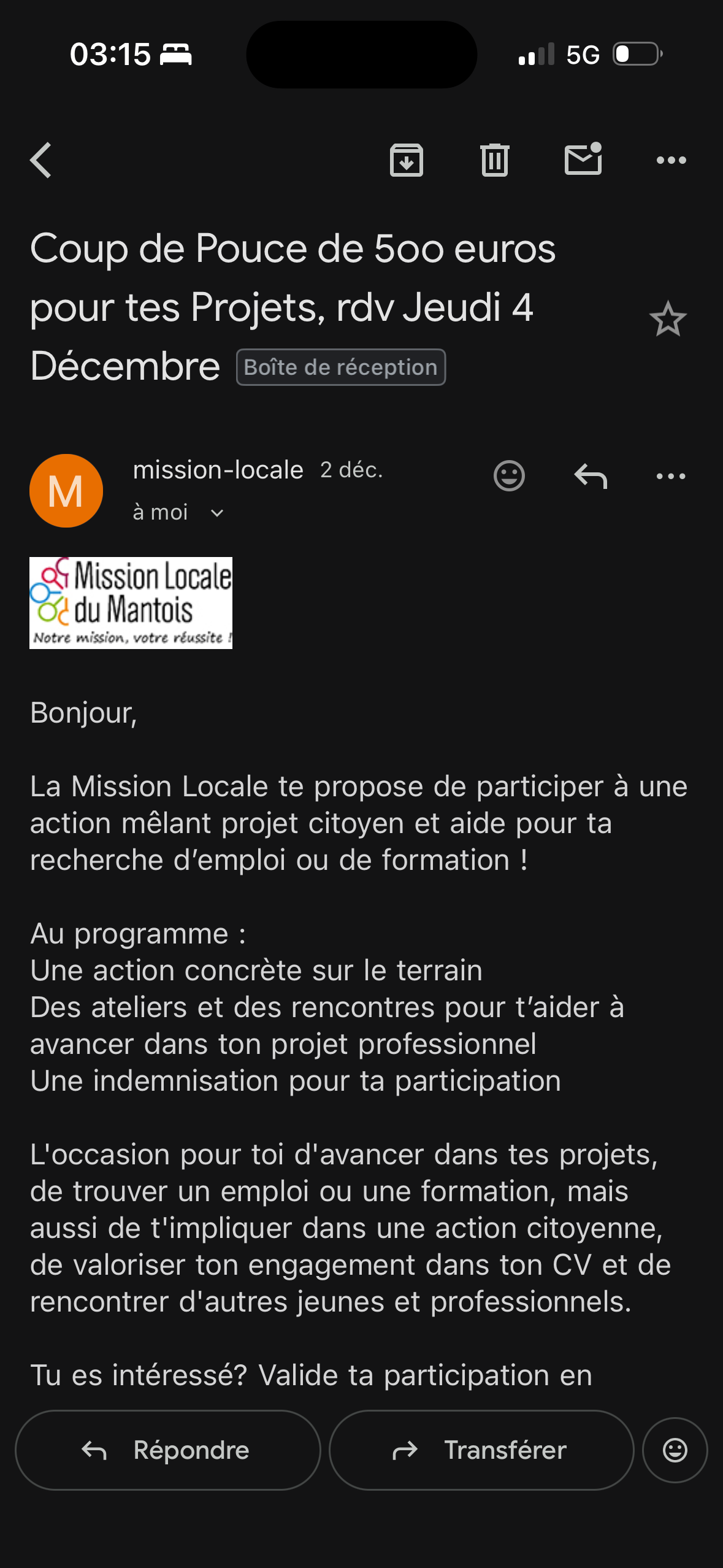 Mais khey c’est pas le CEJ la. A aucun moment dans le mail y’a mention du CEJ