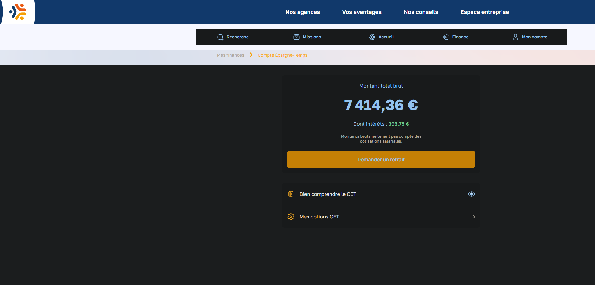 Le Compte épargne temps (C.E.T) souvent les boites d'intérim l'activent par défaut aux noobs de l'intérim game https://www.service-public.gouv.fr/particuliers/vosdroits/F1907