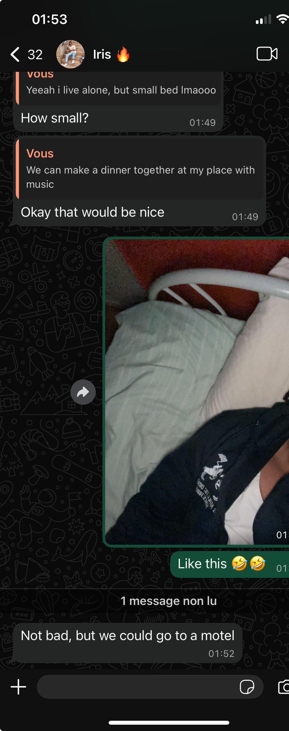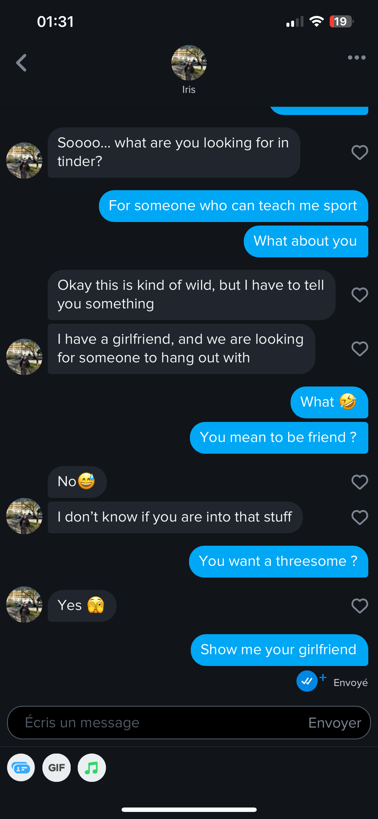 mais là elle te parle de ça au 2em message + la photo de sa "copine" parait fake 100%