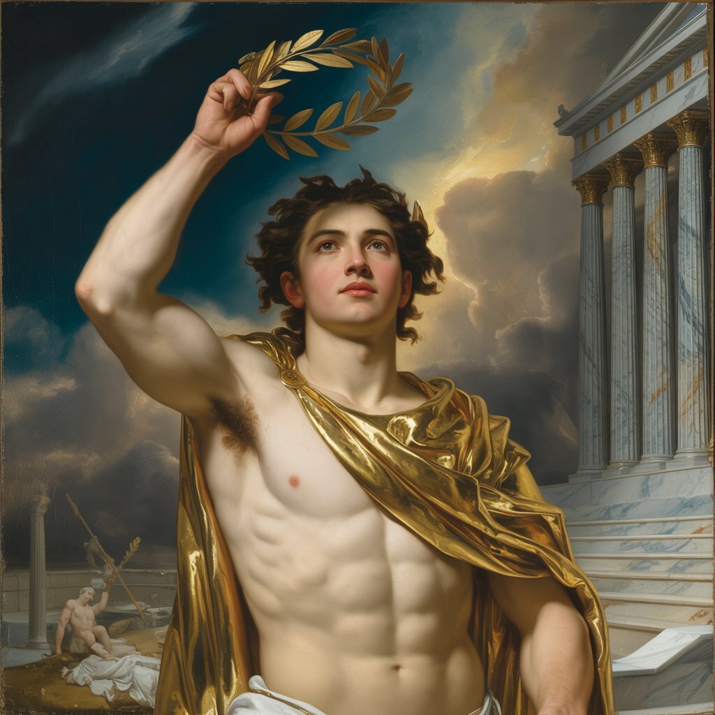 Jeune Zeus se couronnant lui-même Roi des Dieux et Roi de l’Olympe après la Titanomachie :