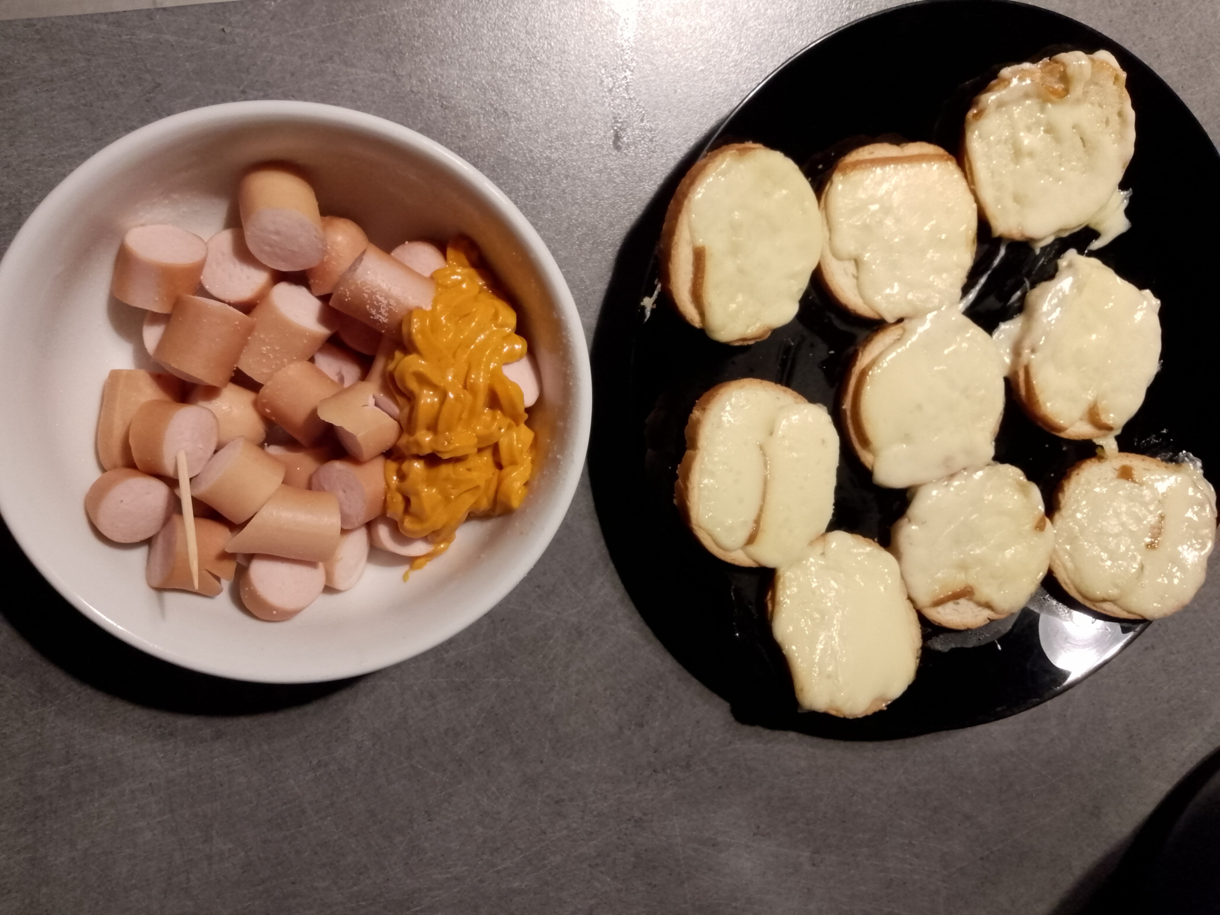 Saucisse de volaille avec les petit pain au fromage de raclette