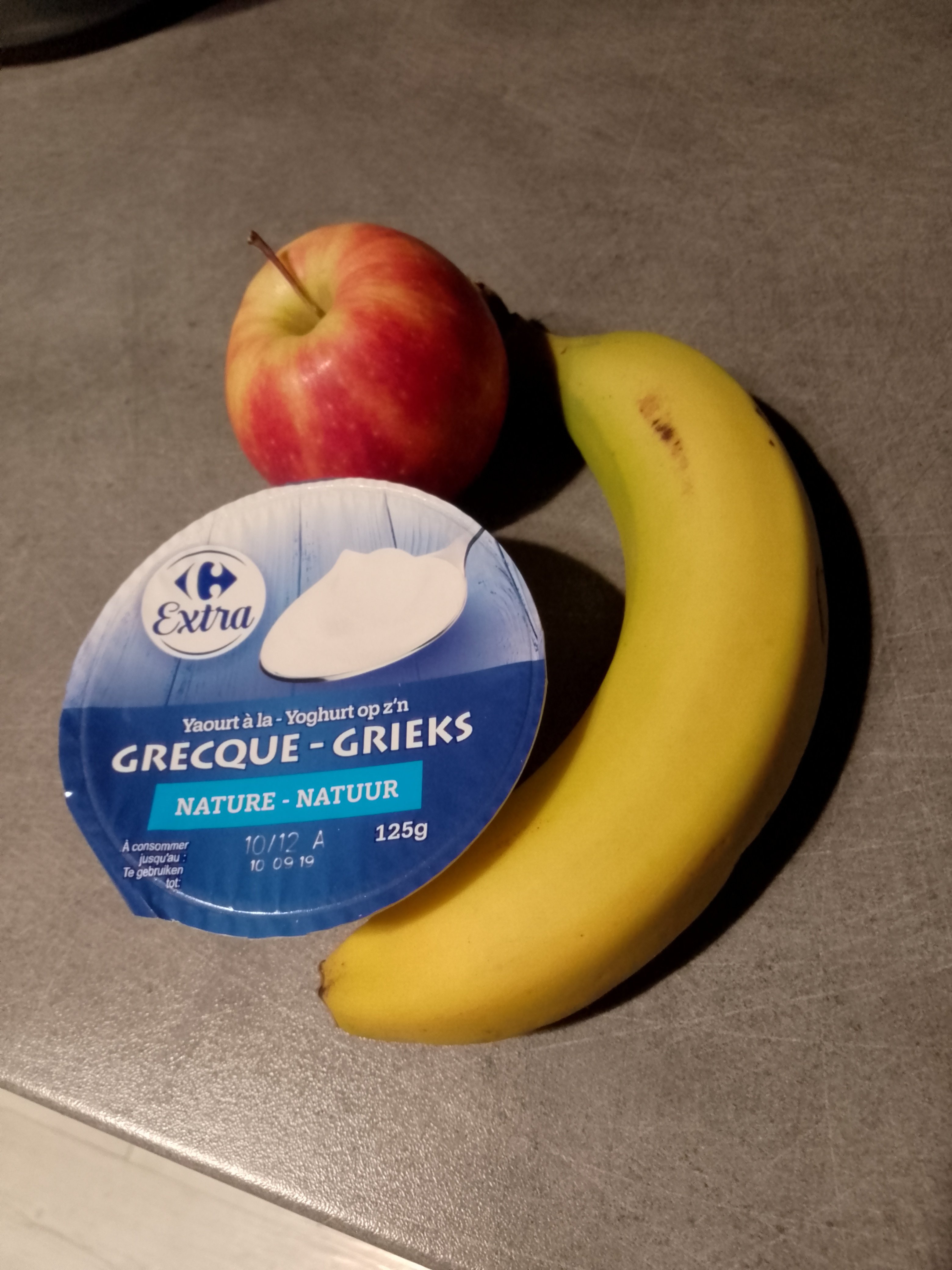 Mais ça me suffit, avec petit desert banane pomme yaourt grecque