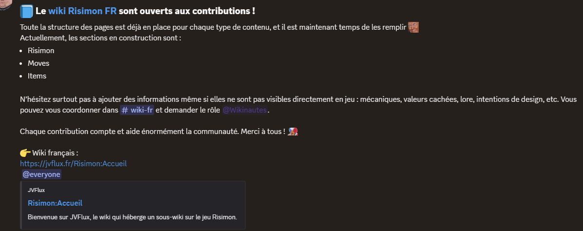 Pour les francophones ils ont choisi jvflux https://jvflux.fr/Risimon:Accueil