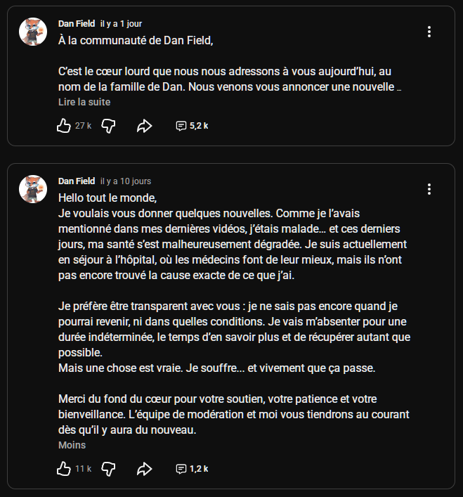 Laisse, c'est un hater qui spamme depuis hier en raillant le décès de Dan Field...